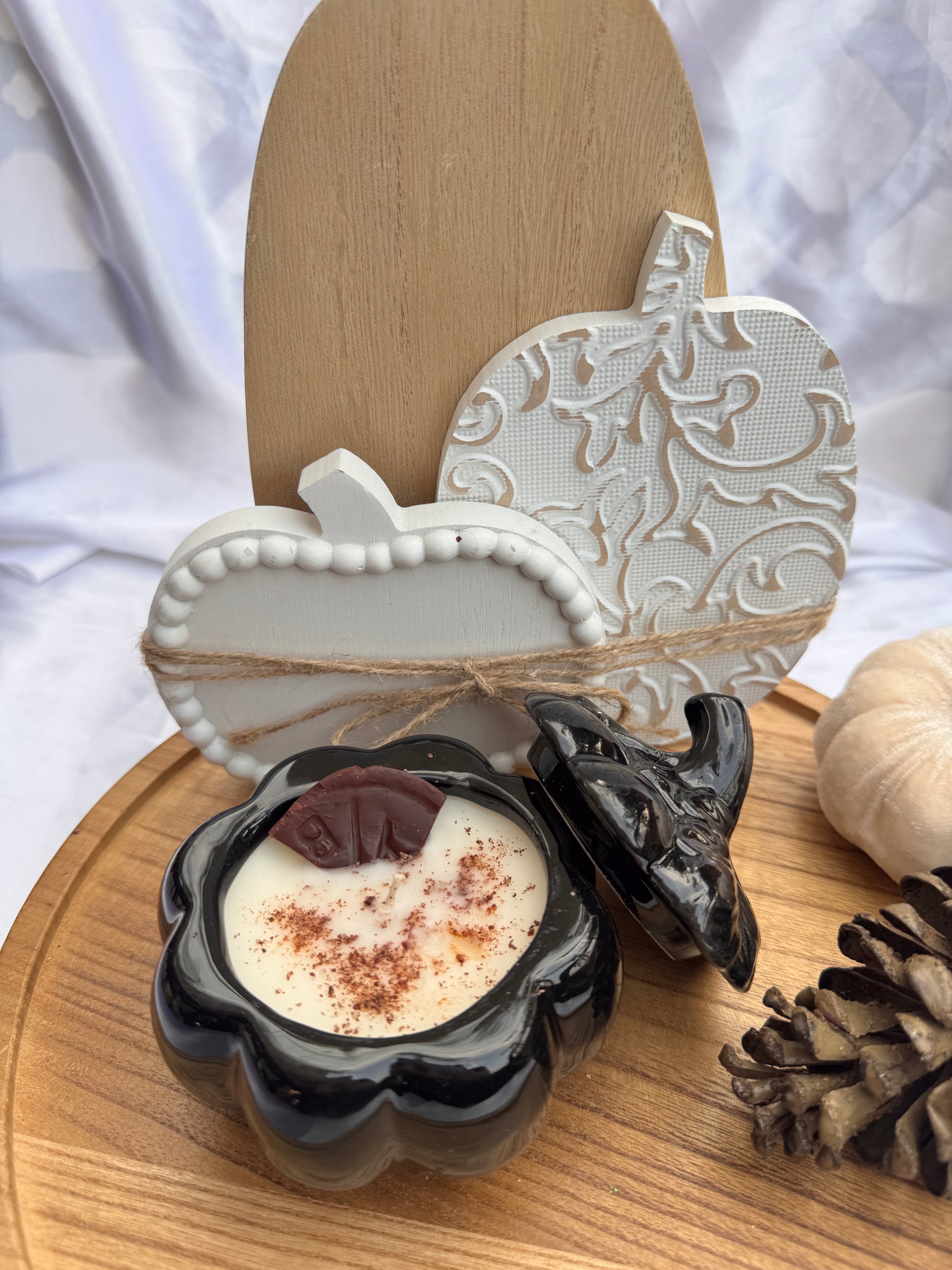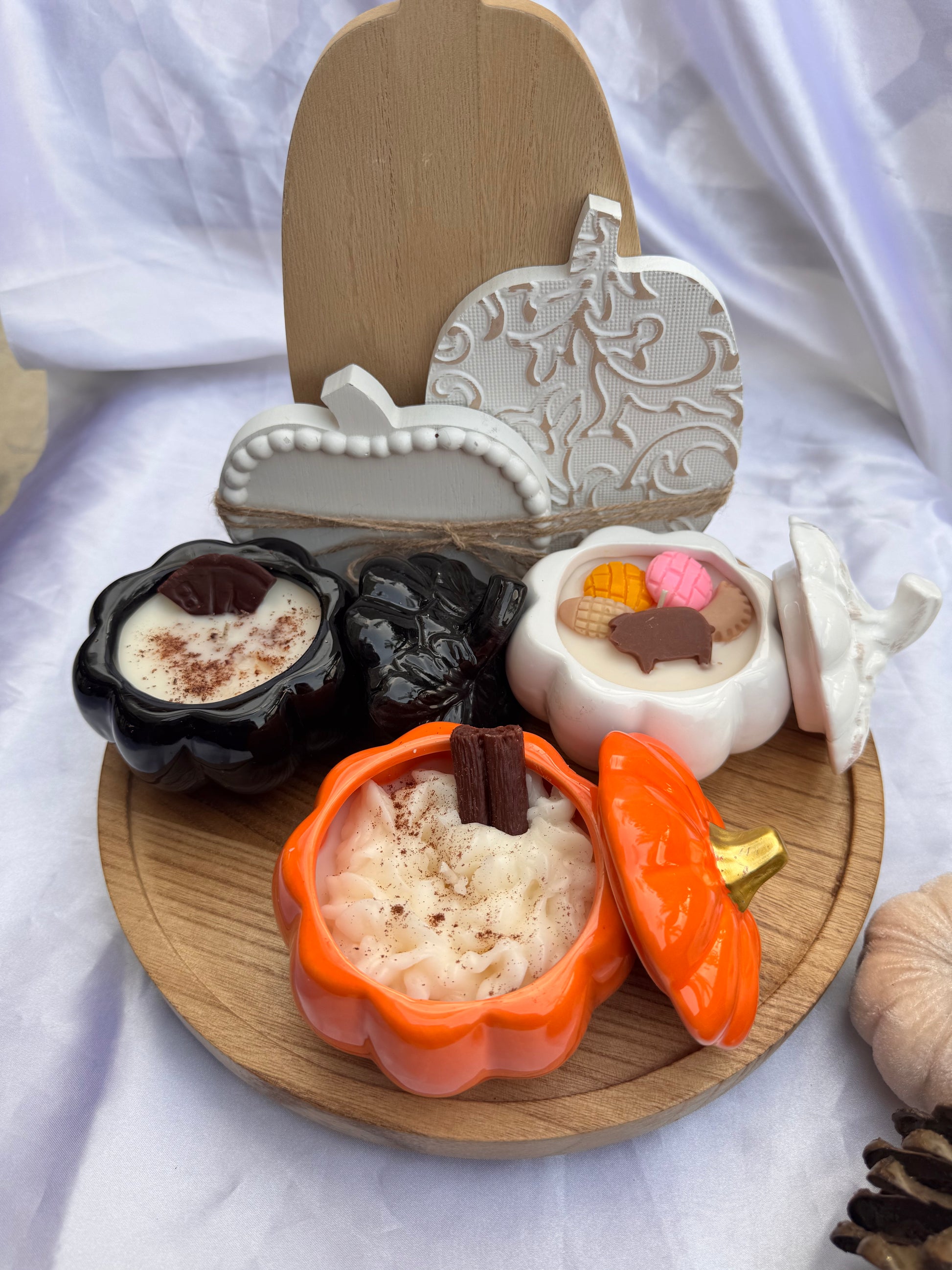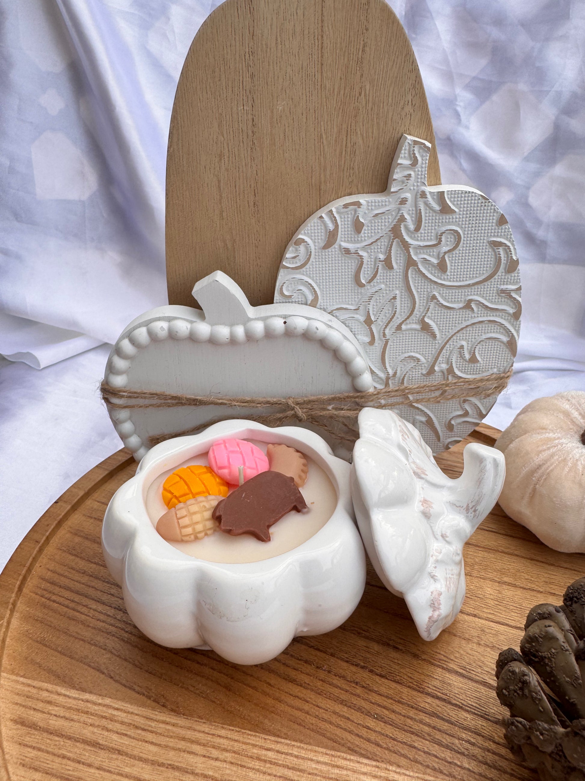 Experience the warm, comforting aromas of Mexican heritage with our Calabacitas Mexicanas candle. Encased in a charming pumpkin vessel, it blends the rich scent of Chocolate Abuelita (Black Pumpkin) , the sweet essence of Pan Dulce (white pumpkin), and the creamy notes of Arroz Con Leche(Orange Pumpkin). This candle brings a festive touch to your home, evoking cozy memories and inviting a vibrant cultural spirit to any space. Perfect for celebrating tradition or adding a unique sensory experience to your décor.